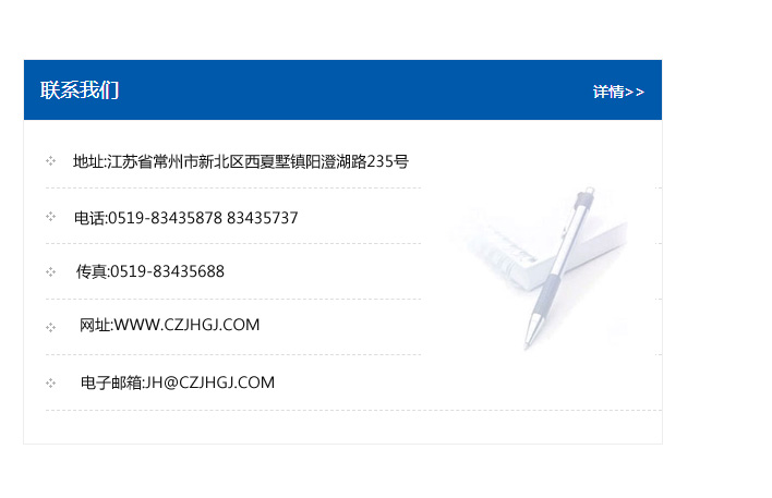 傳真:0519-83435688    郵編:213135    網址:WWW.czjhgj_com.wgreader.com    電子郵箱:JH@czjhgj_com.wgreader.com